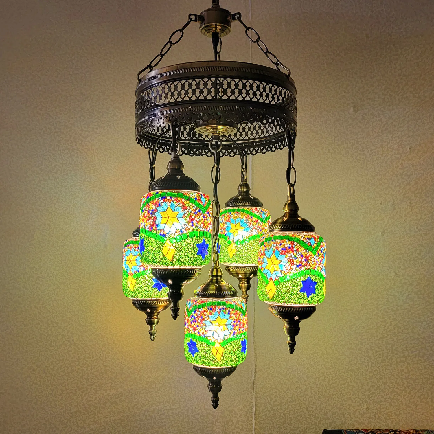5 Ball Turkish Mosaic Chandeliers – Handcrafted Moroccan Lighting