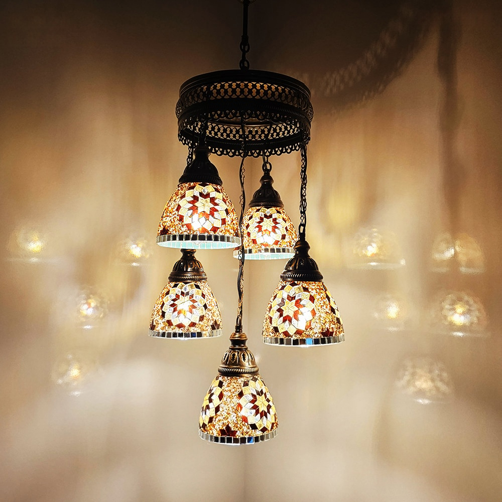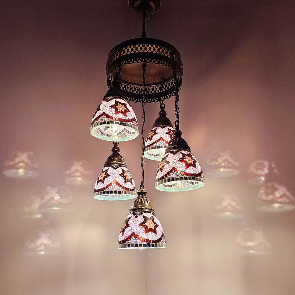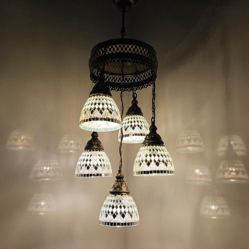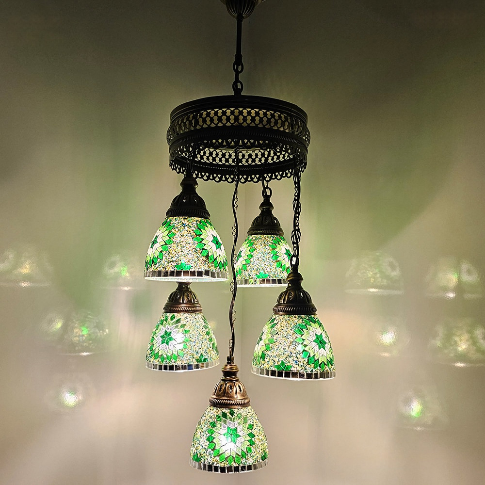 5 Funnel Sphere Turkish Mosaic Chandelier Set