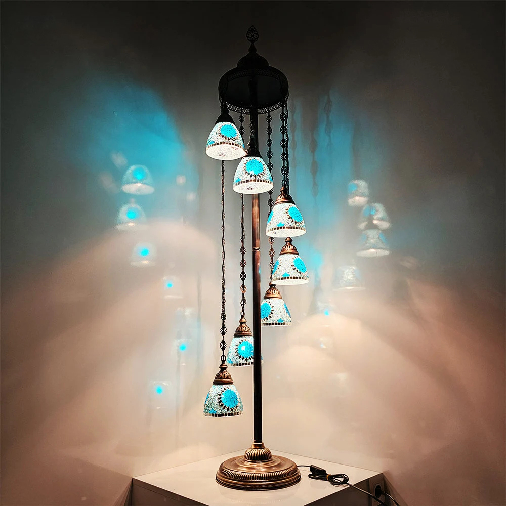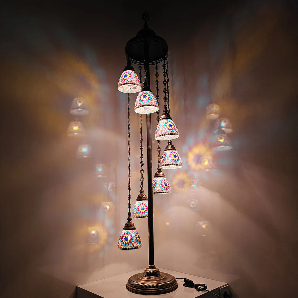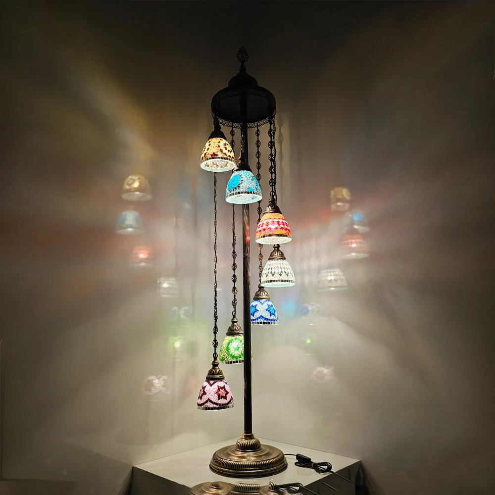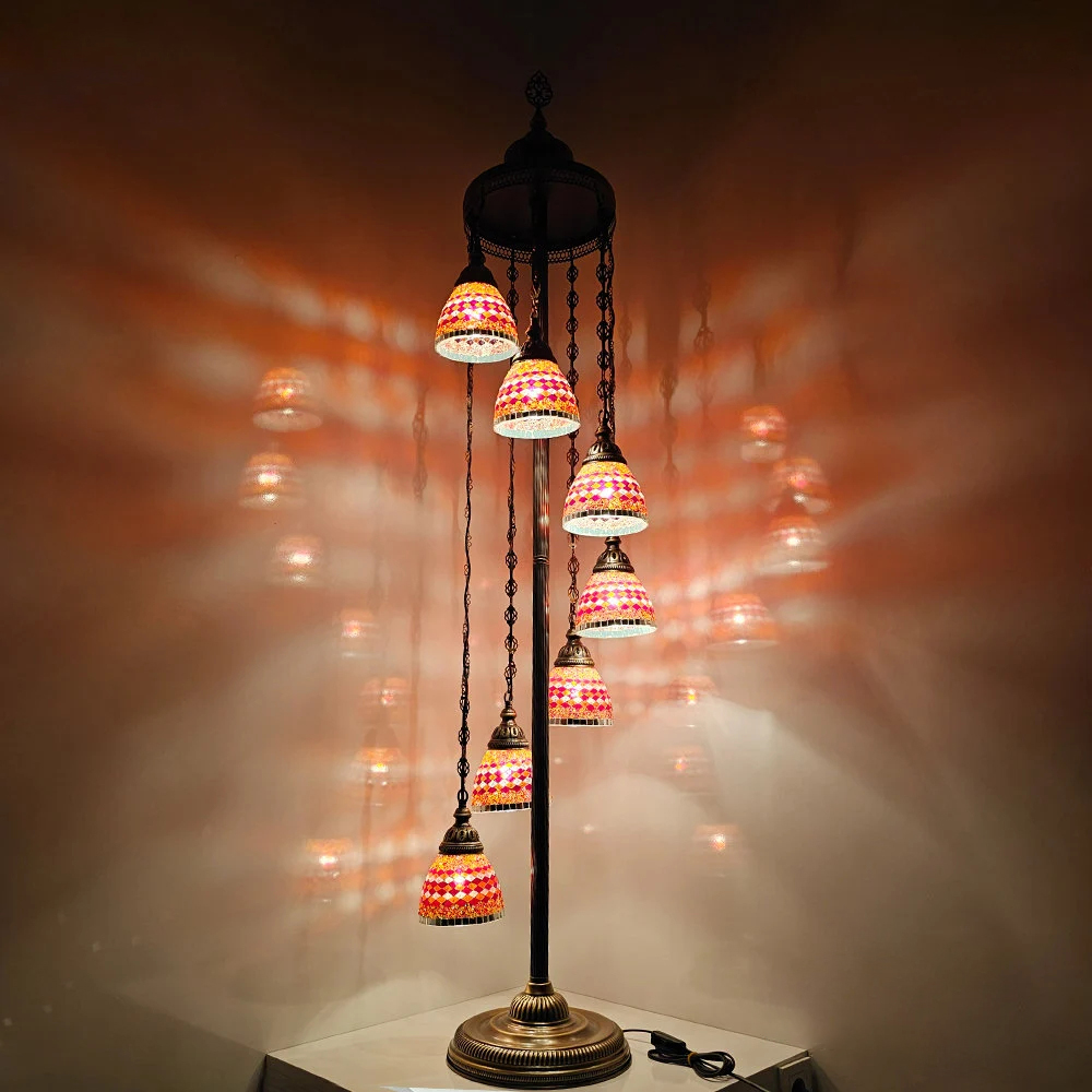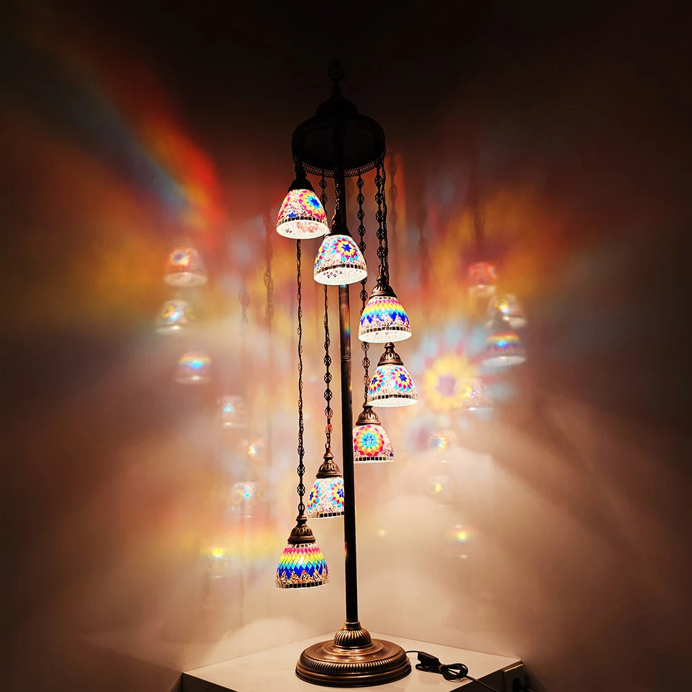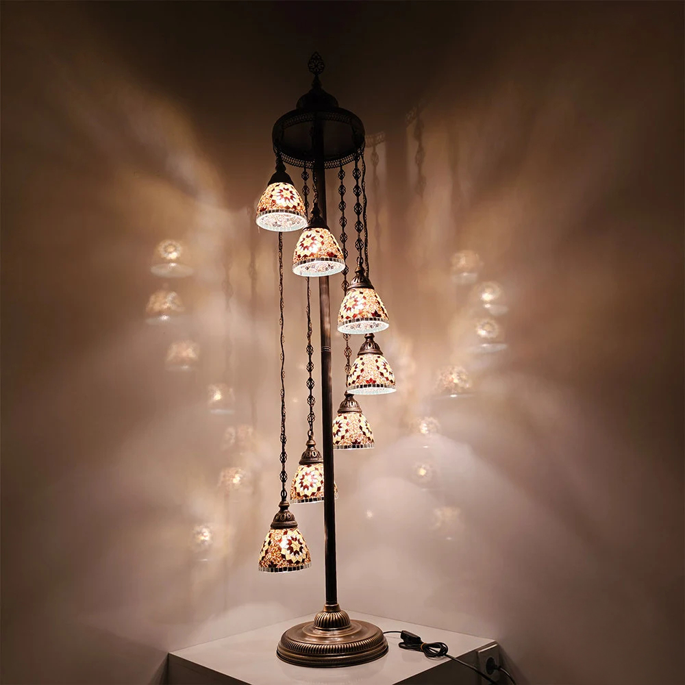 7 Retro Globe Turkish Floor Lamps, Living Room Mosaic Bedside Floor Lights, Bedroom Funnel Floor Lighting, Handmade Mosaic Ball Floor Lamp