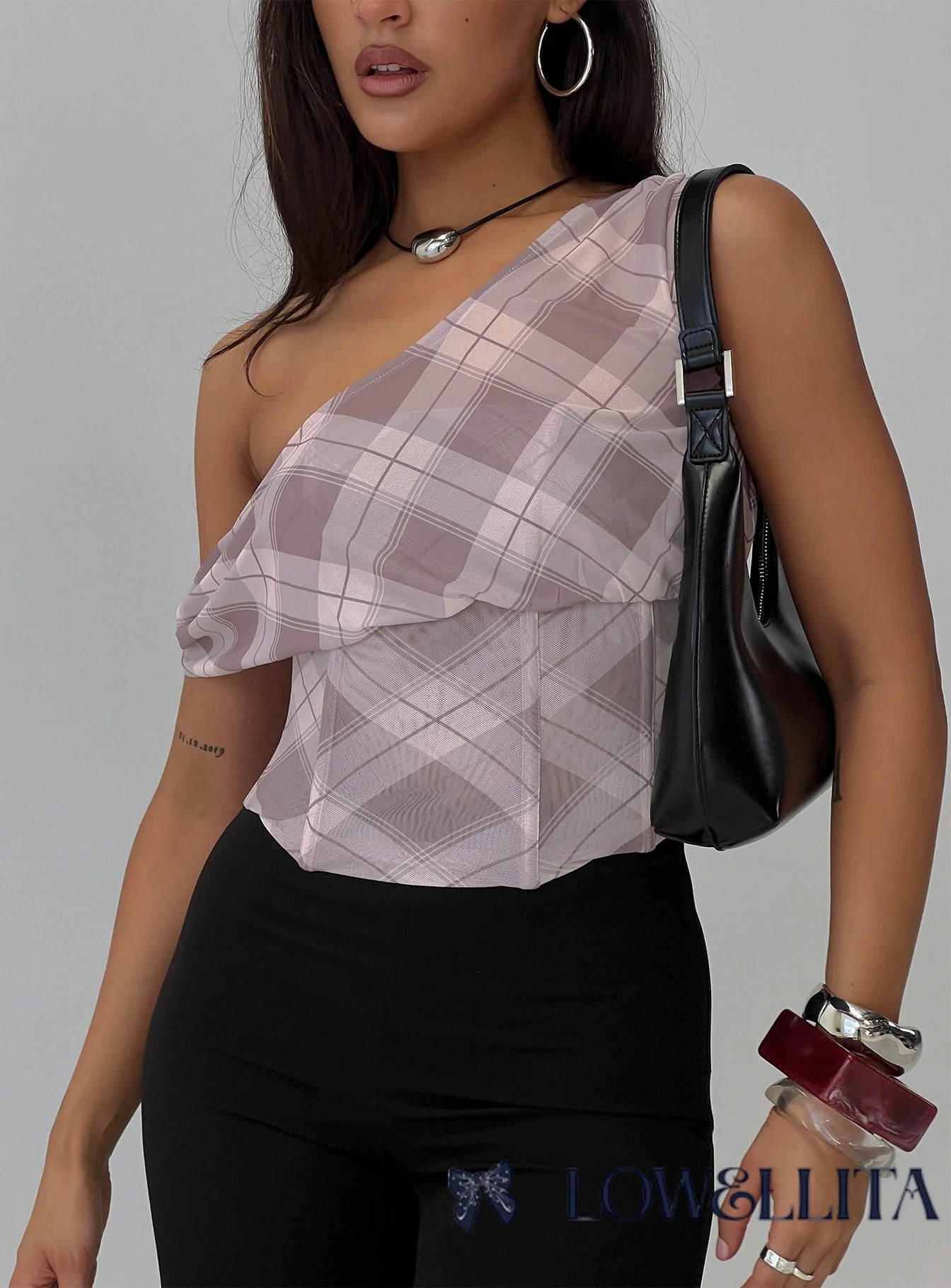 Amabelle Corset Draped Top Multi Plaid