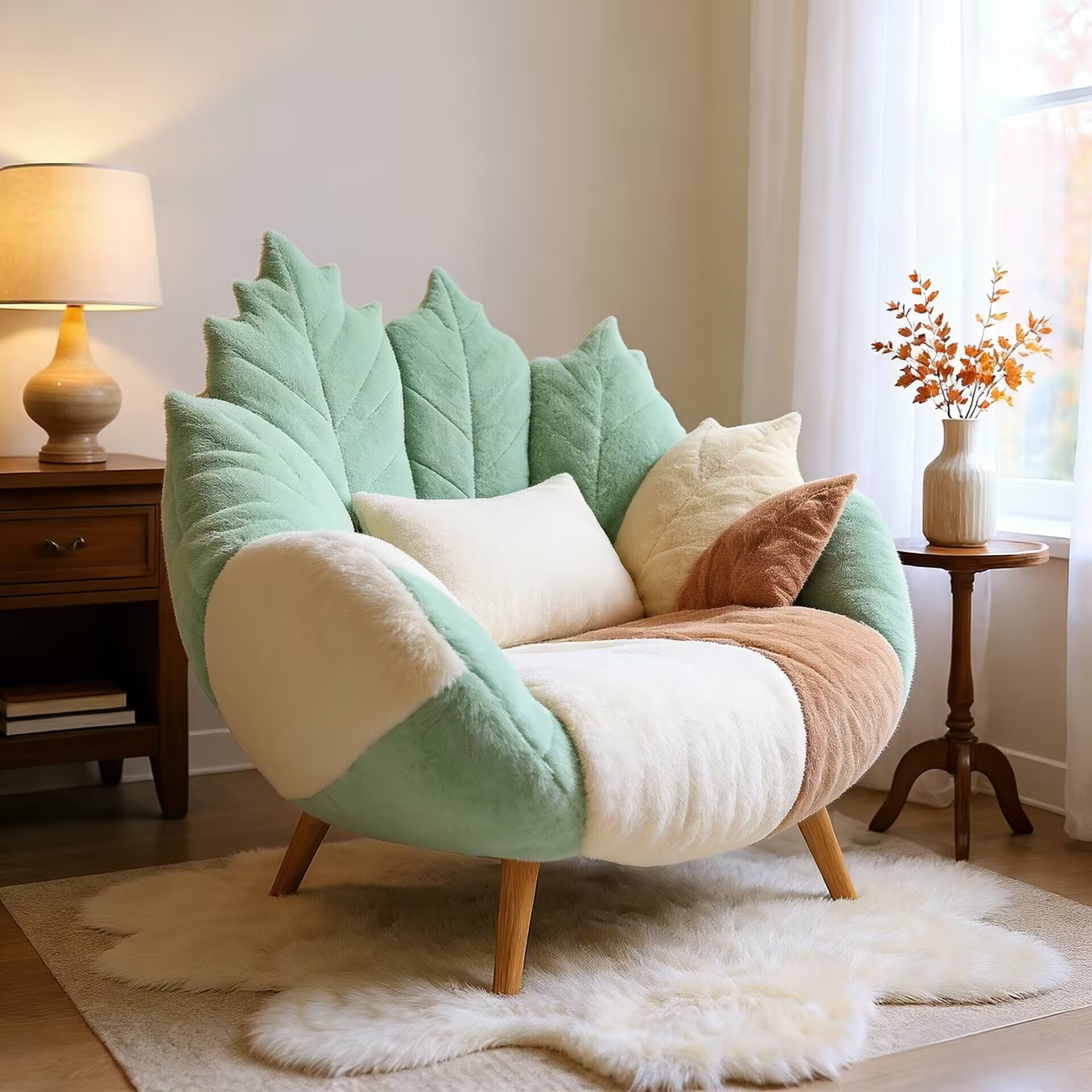 🍁An artistic chair—resembling a stack of fallen leaves—instantly infuses the space with warmth, softness, and a sense of narrative.The moment you sit down, it feels as though you have tumbled right into the golden embrace of autumn.