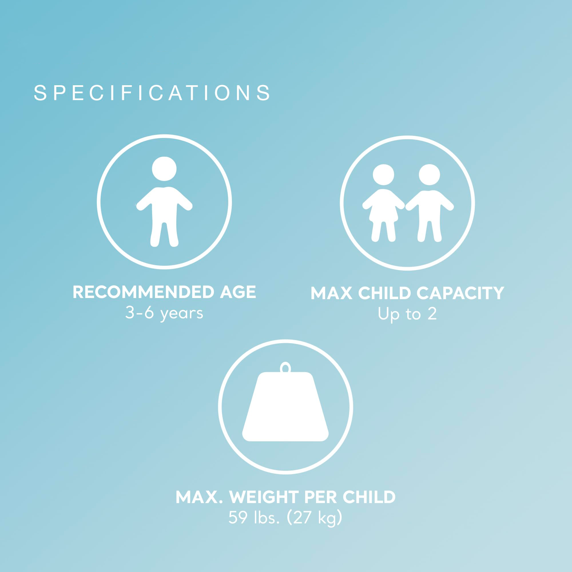 Supports 2 Jumpers: Designed for up to 2 kids, this bouncer can handle a combined weight of up to 120 pounds, ensuring long-lasting enjoyment for young children; Dimensions:68.5"L x 68.5"W x 44"H