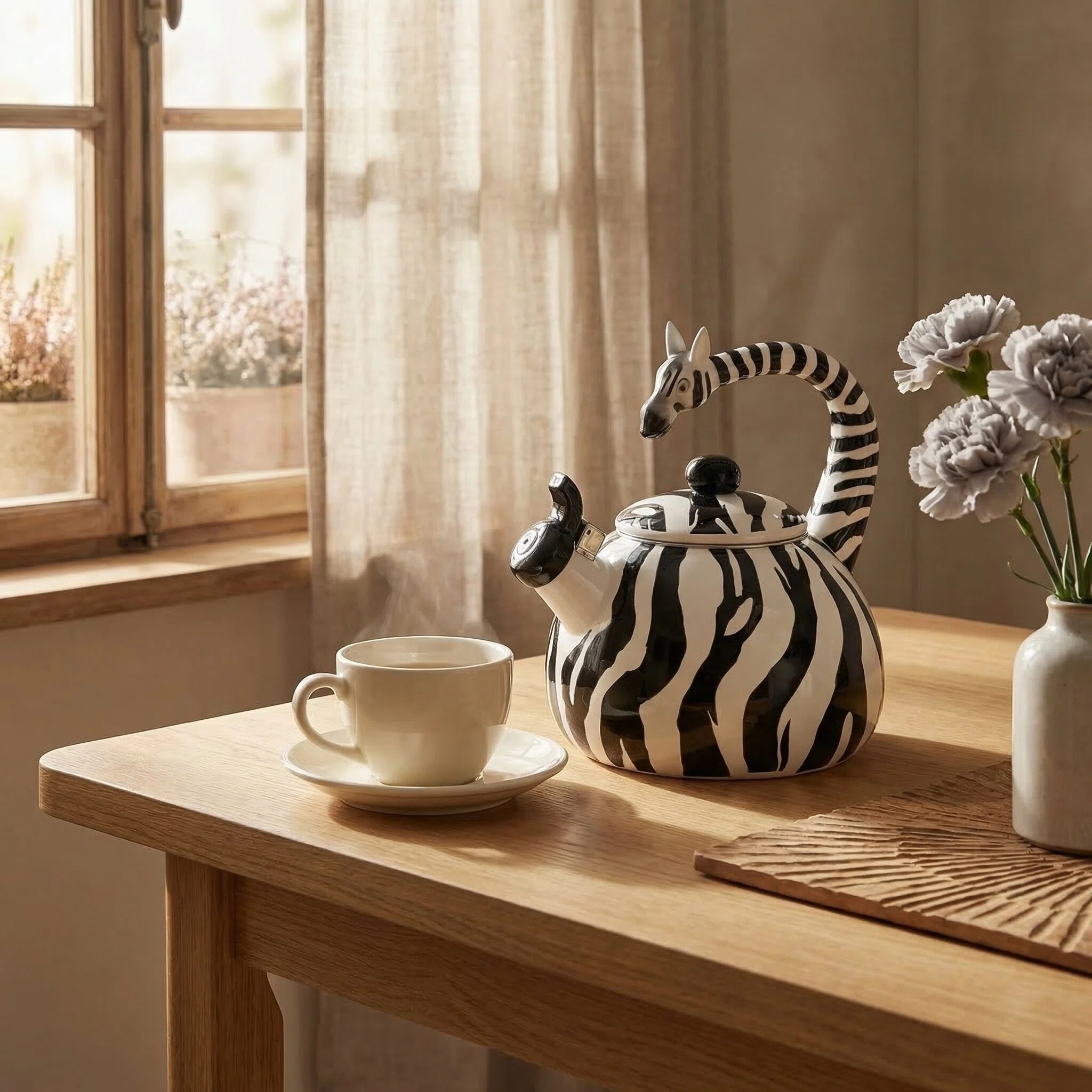 Looking for a practical and stylish gift idea for your loved ones who enjoy zebra-themed decor or unique kitchen accessories? Look no further than the Zebra Whistling Tea Kettle. Packaged in an adorable gift box, this tea kettle is the perfect gift for zebra enthusiasts and a delightful housewarming present that they'll appreciate and use for years to come. Whether you're brewing a cup of tea or adding a pop of color to your kitchen decor, this cute tea kettle is sure to please.